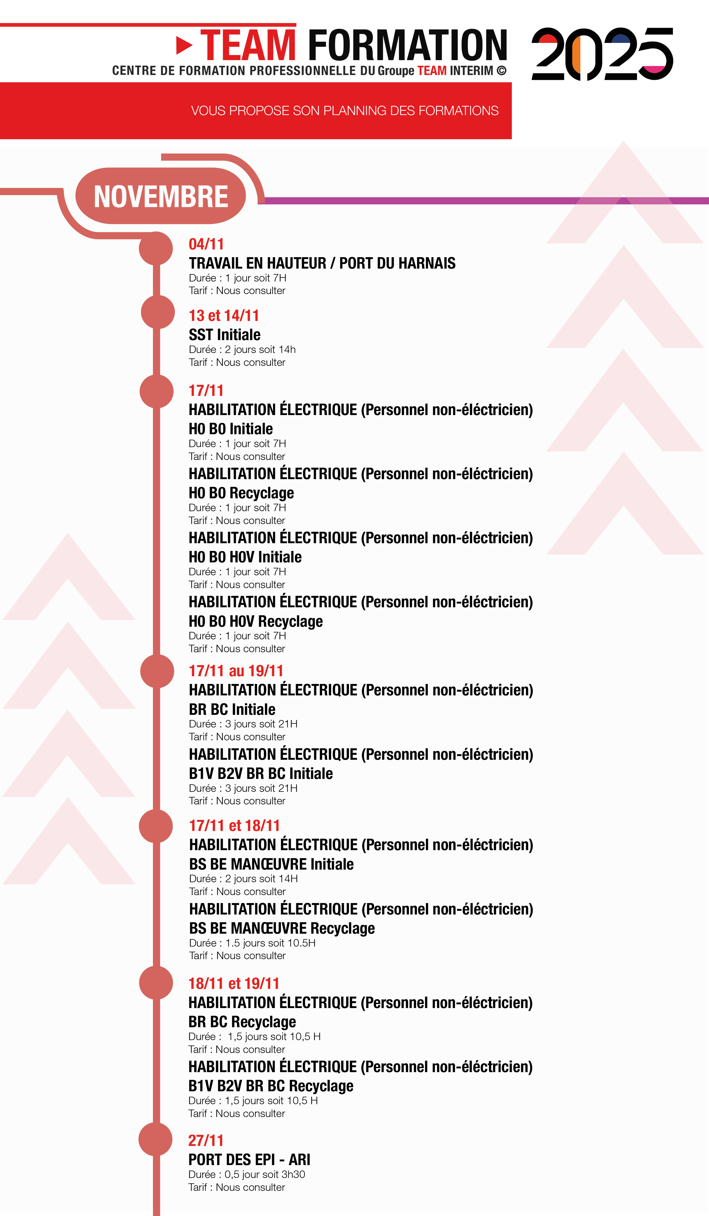 Notre centre de formation professionnelle TEAM FORMATION, vous propose son planning des formations pour le mois de novembre 2025. N'attendez plus et réservez votre session!